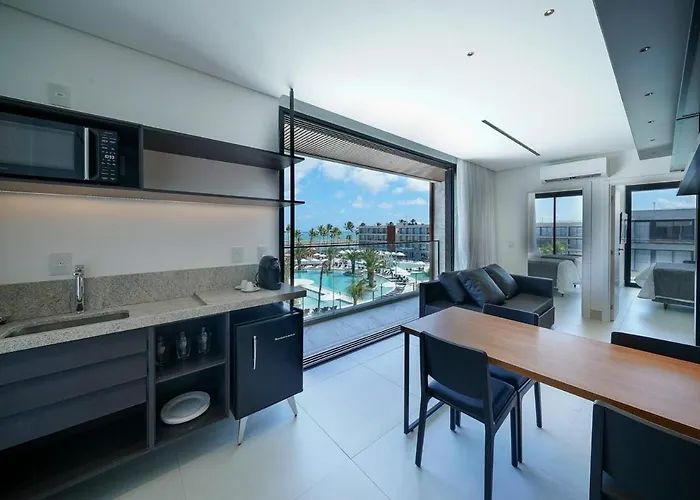 Porto 2 Life - Apartmento Em Muro Alto Ipojuca, un apartamento frente a la playa de 30 m², está ubicado en una zona de playa de Ipojuca, a unos 15 minutos a pie de la Playa de Porto de Galinha. El apartamento invita a los huéspedes a disfrutar de la sauna.